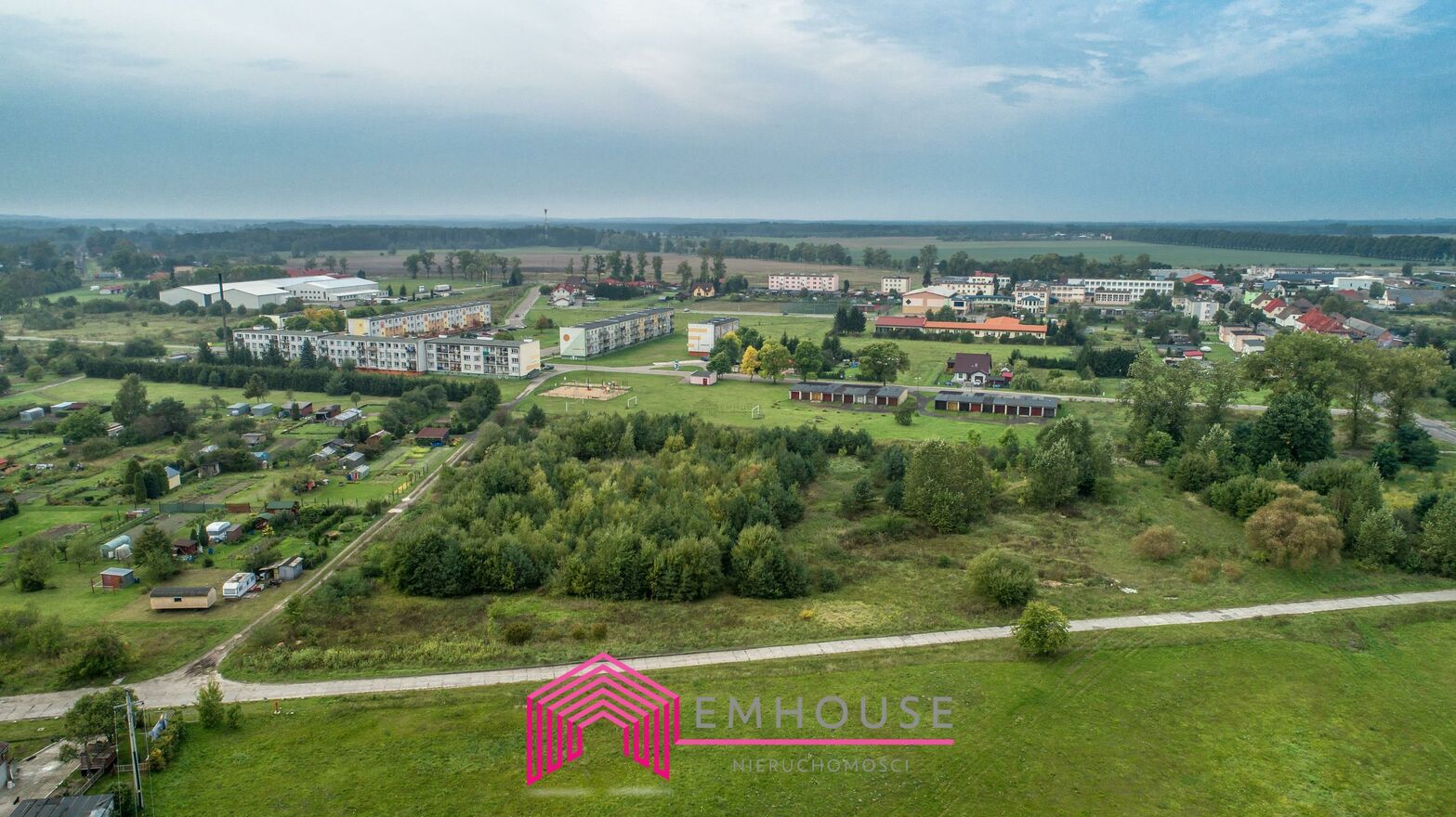 Działka bezpośrednio sąsiaduje z osiedlem mieszkaniowym w Tychowie.